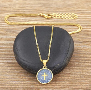 Round Shape, Purple & Green Mosaic Design cross pendant necklace