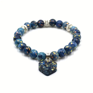 Sequin & Natural Stone Beaded Bracelet with Heart Pendant