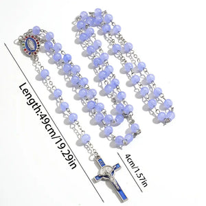 Catholic Rosary - Jesus Crucifix & Virgin Mary Pendant with Blue Beads, 304 Stainless Steel Golden beads