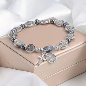St. Benedict Cross Charm Pendant Elastic Bracelet